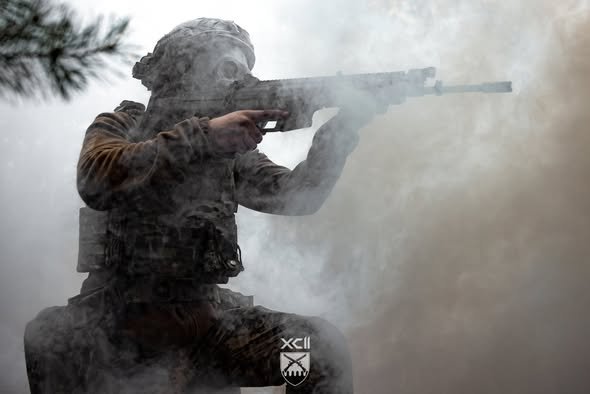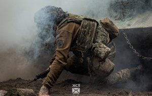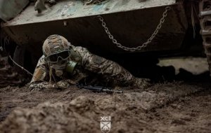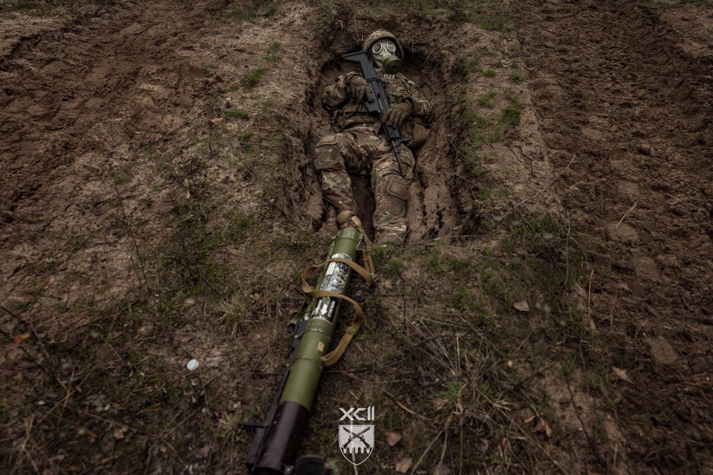 Рекрути мають пролізти під заведеною машиною, коли навколо лунають вибухи і валить дим — тому виконують це завдання у протигазах. Наступна вправа — стрибнути в окоп, коли на тебе рухається бронетехніка, а після того як вона проїде — вискочити і виконати імітацію пострілу з гранатомета.