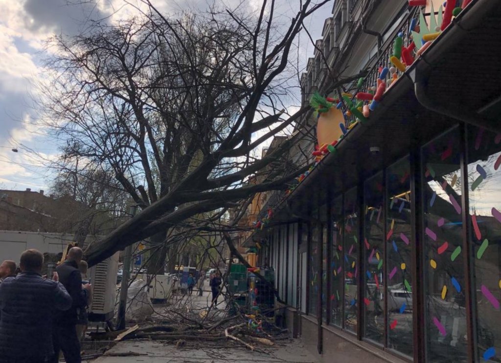 На вулиці Єврейській дерево пошкодило магазин і автомобіль